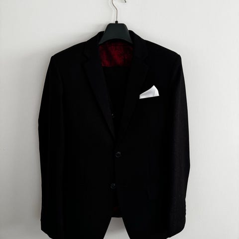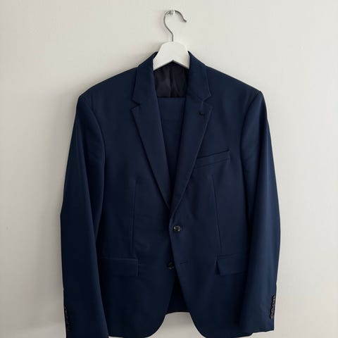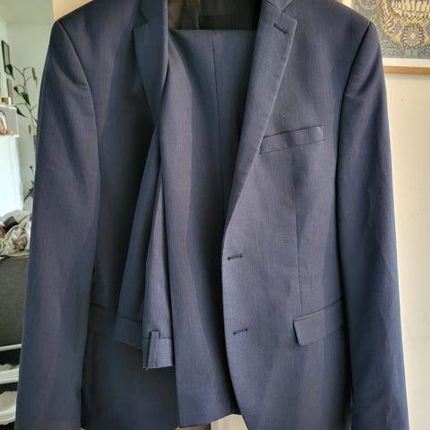 Grå/Blå kostym från H&M. Storlek M på kavaj. Storlek 46 på byxor. Mycket få tecken på användning, inga synliga fläckar.
