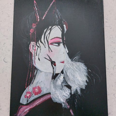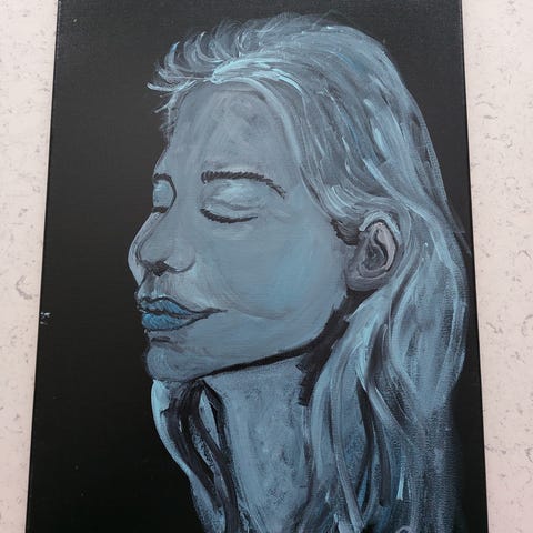 Kvinnomotiv målad på canvas tavla