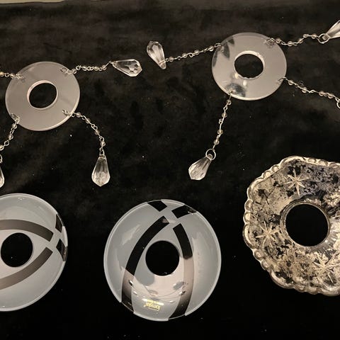 Inköpt på Indiska för 12 år sedan. Aldrig använt. Passa på och snygga till vin flaska på Alla hjärtans dag. Metall med vita pärlor.