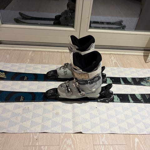K2- skidor 139 cm med Marker bindning på som är lätt att justera efter storlek och vikt .1500:-