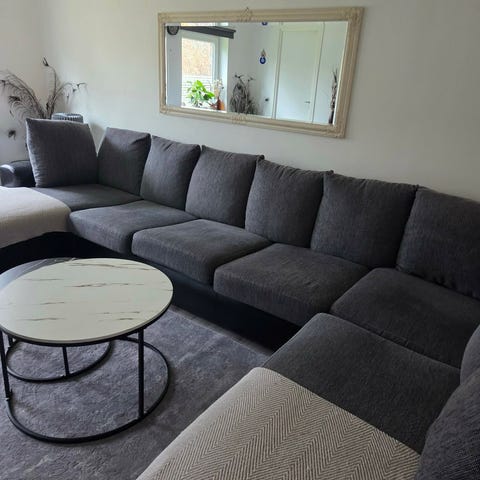 En fin soffa 3 sitts med divan +2 sitts och pall enligt bilden. Klädseln är avtagbar, den går o tvätta om man vill det. Soffan är i bra skick! Finns i Malmö