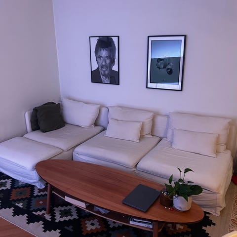 IKEA Söderhamn hörnsoffa i ljusgrått tyg. Soffan består av två sittdelar och en hörnmodul, vilket ger en generös och djup sittkomfort. Kan kopplas isär och lätt kläs om med ny klädsel från IKEA. Klädsel tvättad inför försäljning. Rökfritt. Avtagbara klädslar på sitt- och ryggdynor. Soffan är i gott använt skick. Normalt bruksslitage förekommer. Inklusive ryggkuddar enligt bild. Passar bra i både mindre och större rum tack vare den öppna och luftiga formen. Köpt på IKEA Malmö i september 2023.