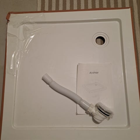 Duschförhängestång i vit färg med måtten 90x90 cm. Utformad i U-form för montering i hörn, avsedd för upphängning av duschdraperi. Levereras i förpackning med monteringsanvisningar på baksidan av kartongen.