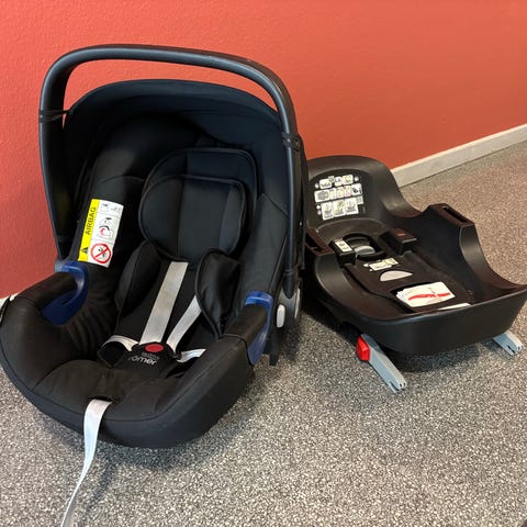 Brita Römer bilbarnstol med bas, upp till 13 kilo. Endast upphämtning.
