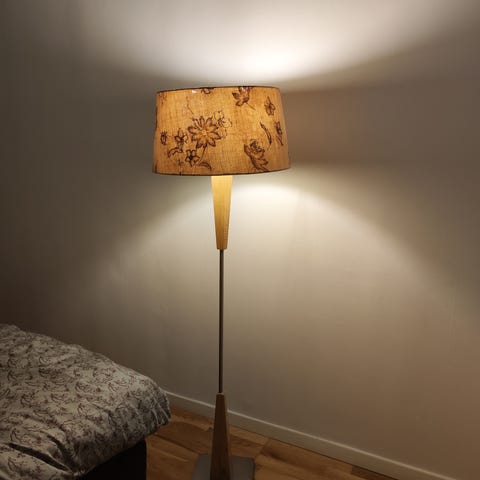 2 st fönsterlampor, fot 60 cm, lampskärm 25 cm diameter