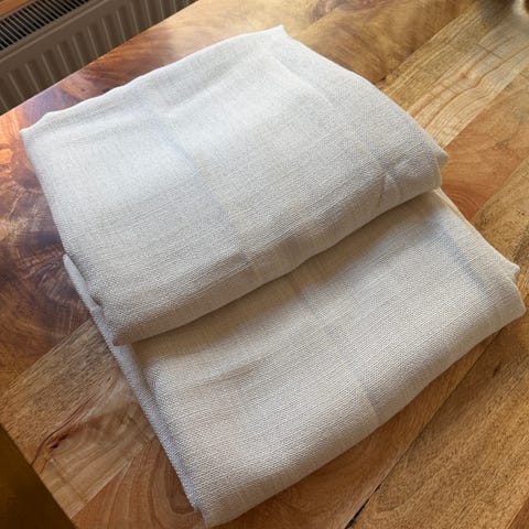 Vita kompletta laminellgardiner.Persiennerna kan vinklas för att reglera ljusinsläpp och insyn. Passar för användning i vardagsrum eller andra rum där man vill kunna justera ljus och avskärmning vid fönster.