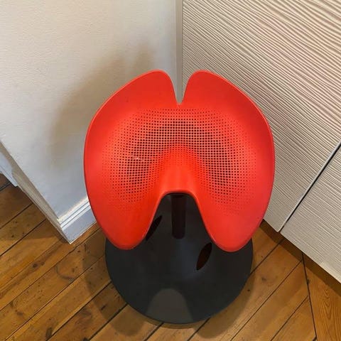 Sits är tillverkad i slitstarkt material samt stolen har små hjul som rullar bra.
