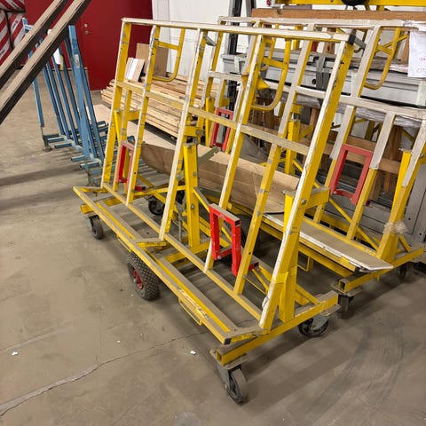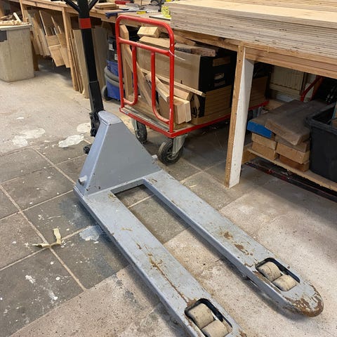 Lyftbord 82x50cm lastyta med justerbar höjd och hjul för enkel förflyttning.