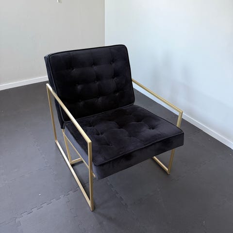 Ny fåtölj i beige sammet