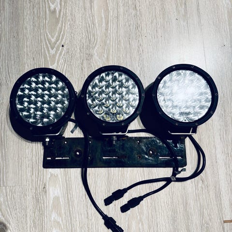LED extraljus 7" med vit samt orange position men går även att få båda positionsbelysningarna att användas som blixtljus. Använd en kort stund har inget behov av dom då jag sålt bilen dom satt på.