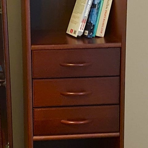 Tror hyllan har varit i ett bibliotek etc, har en liten nummerskylt på ena kanten.