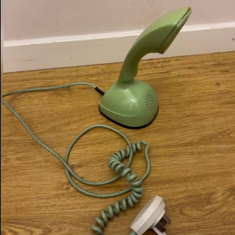 Föremålet i mitten är en Ecophone-telefon, formgiven av Jens Widerberg.