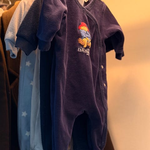 Babyoverall i plysch, 80 % bomull 20 % polyester. Strl 50.