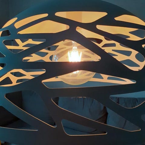 Fin handgjord taklampa i bambu från Mio. Höjd 15 cm, diameter 80 cm. Ger så fint sken!