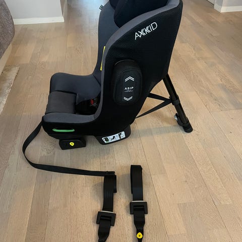 Axkid bakåtvänd bilbarnstol med inbyggt Axkids sidokollisionsskydd (ASIP). Extra inlägg för mindre barn (6-9mån) ingår inte.