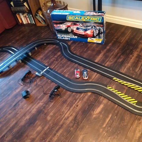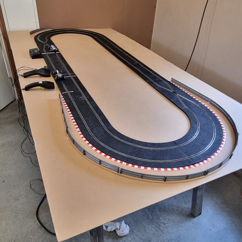Scalextric bilbana med en bil och en handkontroll. Ca 15 år gammal men fungerar som den ska.