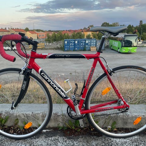 Cannondale caad optimo 4. Sitter Continental gp 5000 på i nyskick. Nytt smalare styre. Sitter en selle italia sadel med nypris 2700 som inte ingår för angivet pris, en fizik sadel följer med.