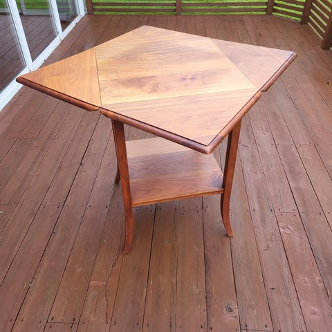Ekbord. Litet matbord, frukostbord, sidobord, avlastningsbord. Gott skick. 75x75cm med klaffen fälld. 75x115cm med klaffen uppe.