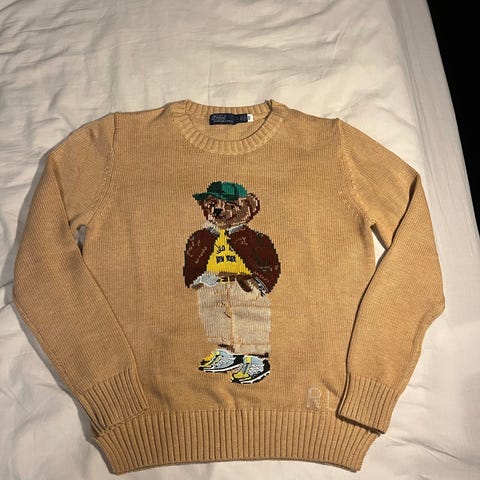 Tröjan är i väldigt fint skick och har inga tecken på användning. Det står storlek XL men jag tycker den är som en L, kolla gärna måttbandet a för tydligare mått