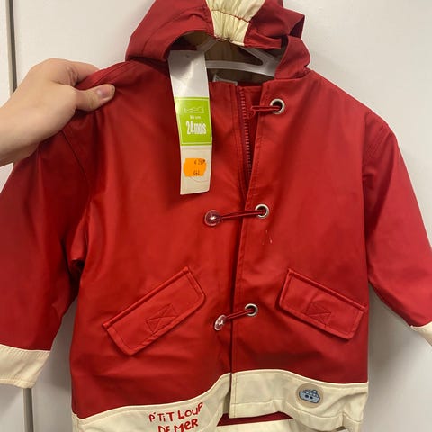 Gul och glad regnjacka med skönt fodrad insida. Riktigt fin jacka som varit en favorit.