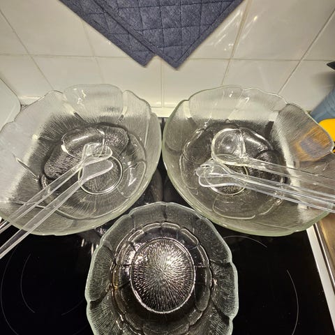 Jättefin keramik från Visby. 6 tallrikar, 4 ölstop, 4 vinbägare, 4 nubbebägare och en udda mugg.