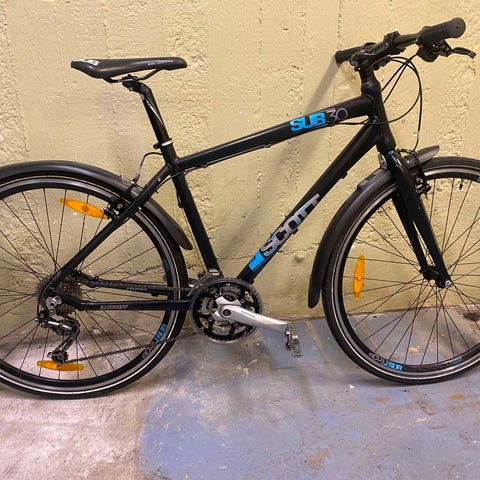 Säljer min Specialized cykeln i storlek M med aluminiumram. Den har 16 växlar, hydrauliska bromsar och dynamobelysning både fram och bak.