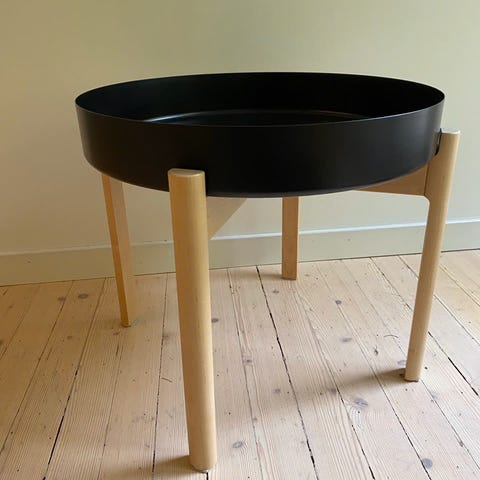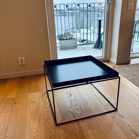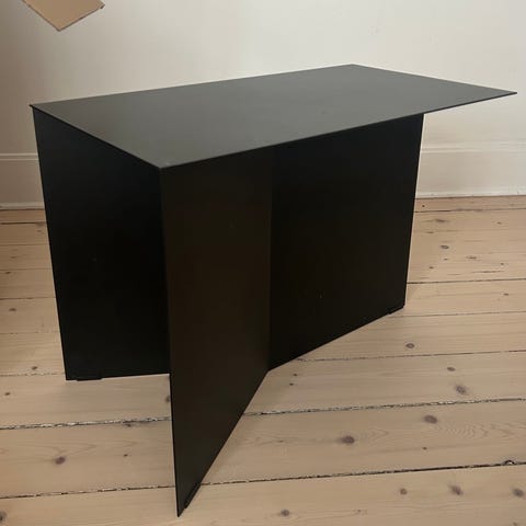 Svart metall, stabilt metallbord.