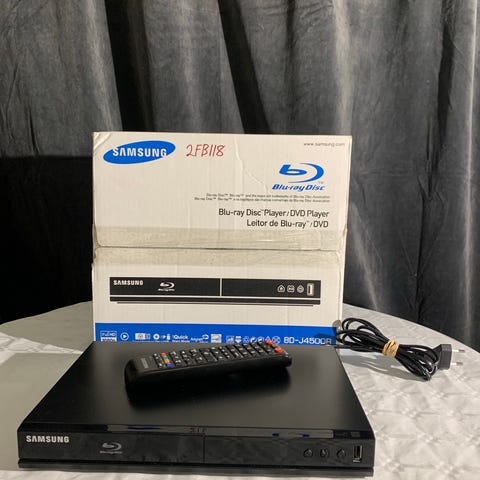 Samsung blu-ray spelare i svart utförande. Enheten har frontpanel med touchknappar för grundläggande styrning samt medföljande fjärrkontroll. Spelaren är avsedd för uppspelning av blu-ray-skivor och dvd-skivor via HDMI-anslutning till tv eller annan bildskärm. Lämplig för hemmabio och filmvisning i vardagsrum eller liknande miljöer.