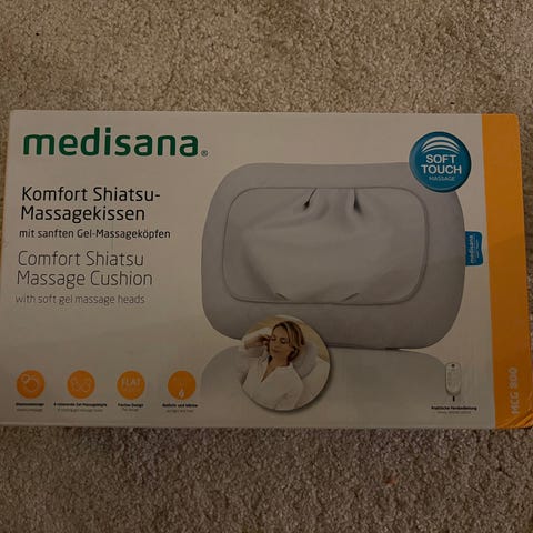 Medisana NM 865 nackmassagerare. Utformad som en U-formad kudde för massage av nacke och skuldror. Modellen har HD-massagefunktion och drivs via el. Passar för användning hemma eller på resor för riktad muskelavslappning i nackområdet.