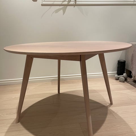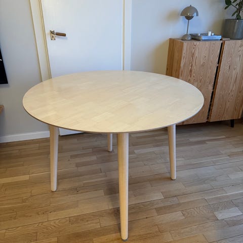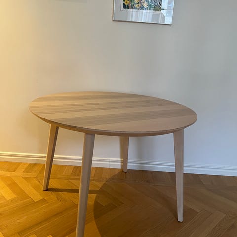 Mio soffbord i rund modell i trä med vitt pigment. Inköpt för ca 1,5 år sedan, nypris 2500kr.