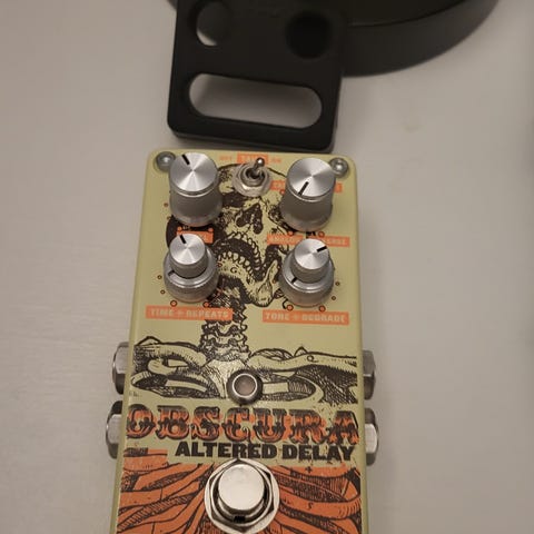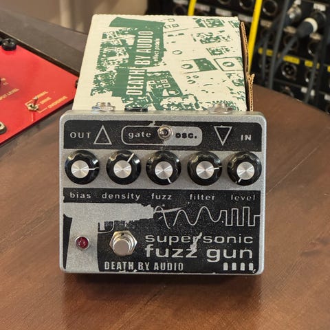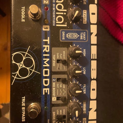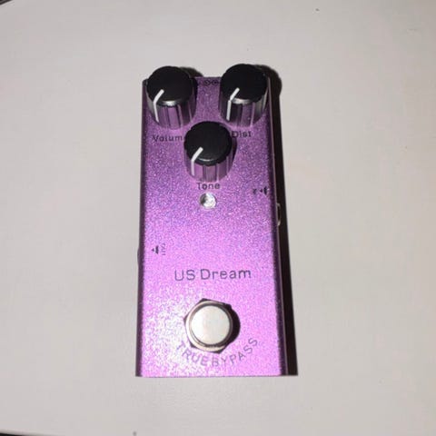 Karlagatan Electronics Broadcast gitarrpedal i vit färg. Pedalen har tre reglage på ovansidan samt fotomkopplare. På sidan finns in- och utgångar för 6,3 mm telekontakter samt strömanslutning. Undersidan är försedd med kardborreband för montering på pedalboard. Avsedd för elgitarr eller andra elinstrument som använder standard telekablar.