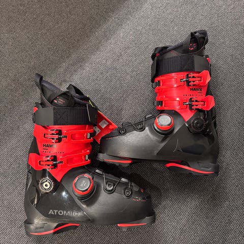 Atomic Hawx Prime RX alpina pjäxor i storlek 26–26.5 (305 mm skal). Färg svart med metallfärgade spännen. Modellen har fyra justerbara spännen och power strap upptill för stabil passform. Märkta med Energy Backbone för bättre kraftöverföring och stöd vid åkning. Passar för alpin skidåkning med standard alpina bindningar. Nypris 3000kr