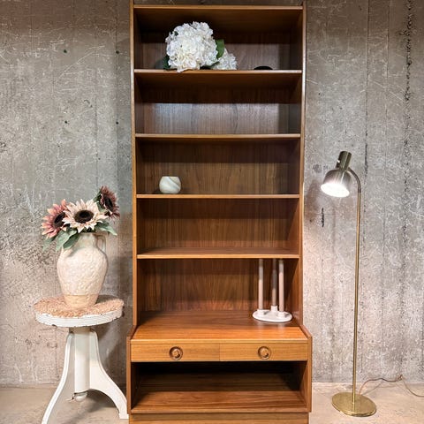 Bokhylla i teak från 1960-talet i mycket gott skick.