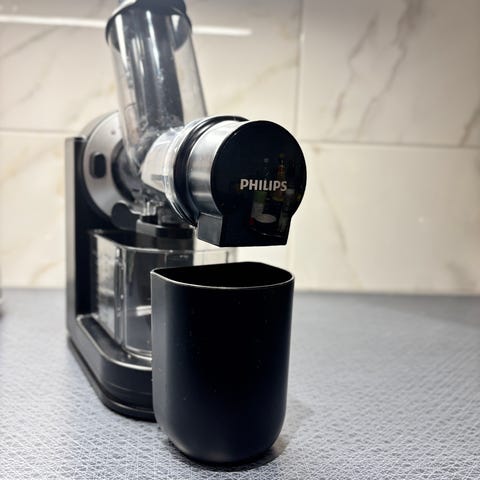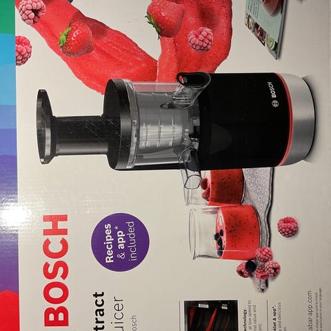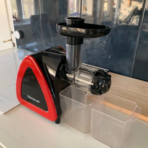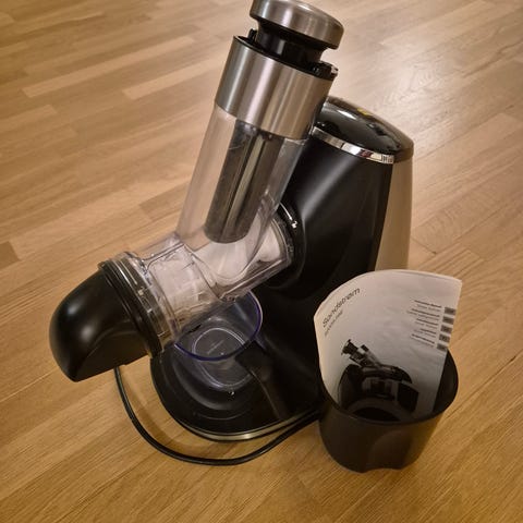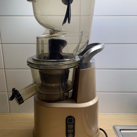 En kraftfull slow juicer som är begagnad men ändå i väldigt bra skick. Alla näringsämnen finns kvar när juicen pressas långsamt.