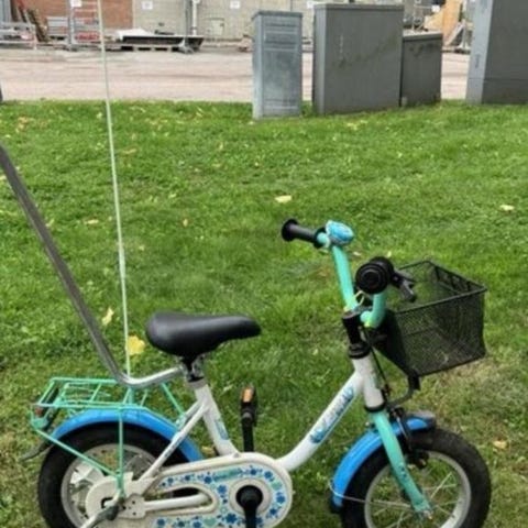 Säljer en fin rosa barncykel från Biltema med 12 tum hjul, sadelhöjd 18, cm (kan justeras något) Finns en mindre spricka/slitage vid bromsfästet (se bild), påverkar inte funktionen.