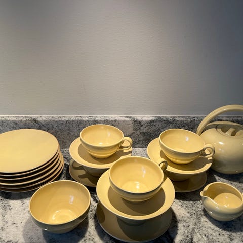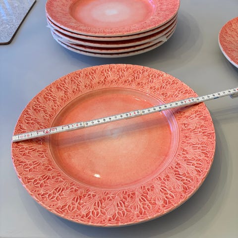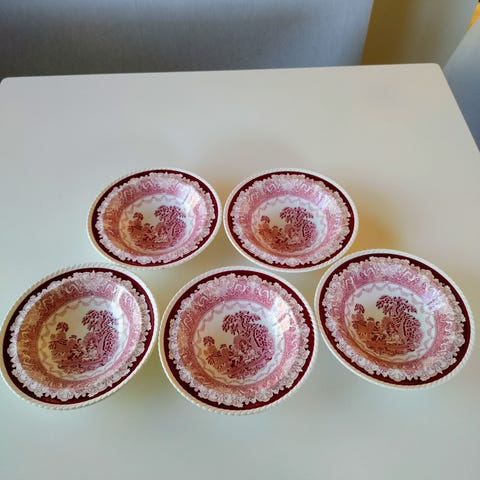 Sex stycken assietter från Gefle, modell Rubin.
