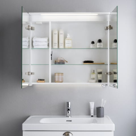 Alterna Ariella X120 Spegelskåp Ljusgrå Matt med Dubbelsidiga Speglar med eluttag