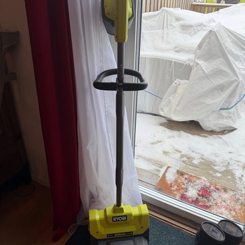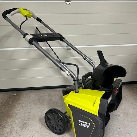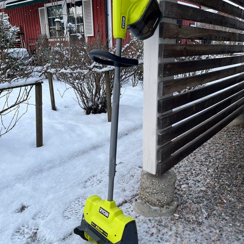 Batteridriven snöskyffel. Är en del av Ryobi ONE+ systemet och är kompatibelt med alla maskiner och batterier i samma serie.