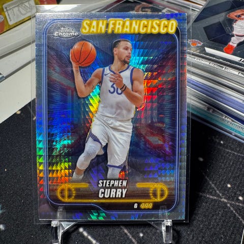 Stephen Curry basketkort med holografisk/glittereffekt. Kortet är numrerat 226/350, vilket innebär att det finns totalt 350 exemplar av denna variant. Motivet visar spelaren i matchställ med texten San Francisco överst på kortet. Passar för samlare av basket- och sportkort.