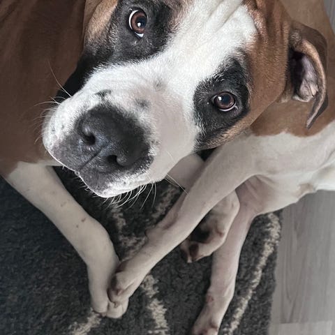 Pappa Dexter med reg.nr SE50115/2022 och Mamma Stella som har ID-nr: 941000027486662 är båda en Boxer ras.