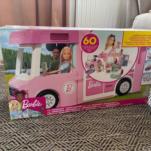 Barbie husbil/campingbil, dockor, hästar m.m.