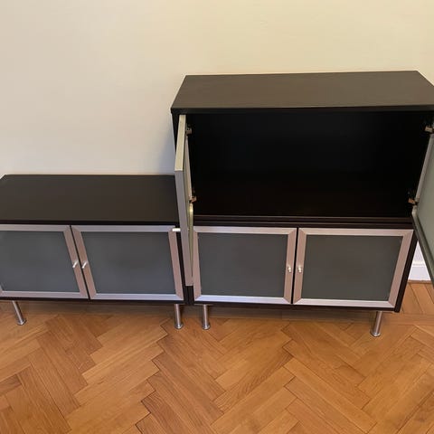 Säljer två gråa skåp i metall från Ikea. Perfekta som sängbord!