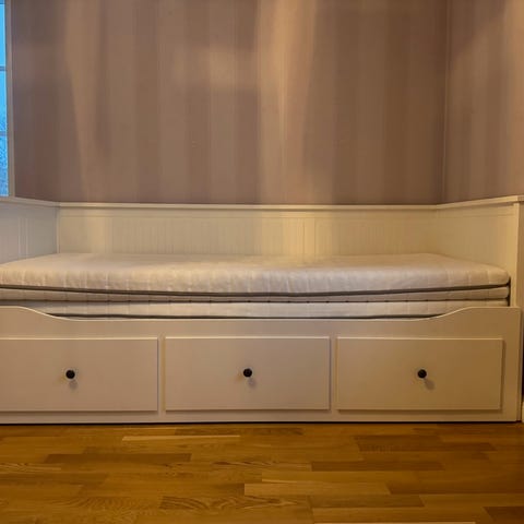 Sängarna med utdragslåda och resårbotten.