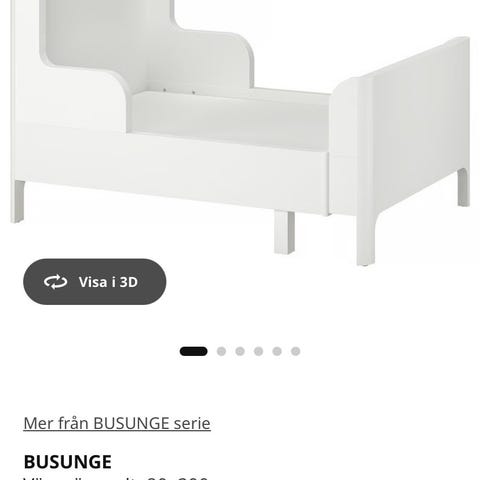 IKEA juniorsäng i vit färg. 90x200 cm. Sängen har ribbotten och en enkel sängkant/sängbräda på sidan. Under sängen finns utdragbara förvaringslådor på hjul. Passar barn som växt ur spjälsäng men ännu inte använder fullstor säng. Ytskiktet visar spår av användning med vissa märken och skador enligt bild.
