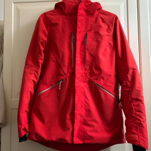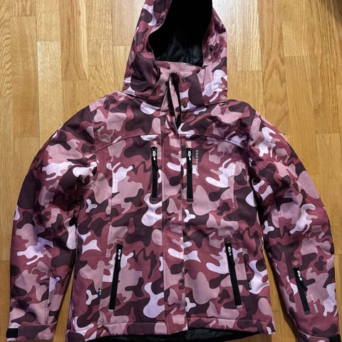Five Seasons vinterjacka för dam i storlek 38. Jackan är rosa med grå partier upptill och har huva. Yttermaterial i polyester. Modellen har dragkedja framtill och 2 fickor med dragkedja. Invändigt finns fodrat innerparti med flera innerfickor samt ficka på armen för liftkort. Har använts som skidjacka.
