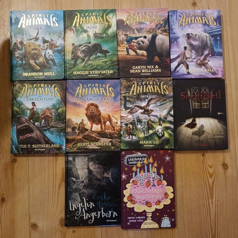 "Jakten på Jack" samlingsvolym och "Drakar i Globen" kapitelböcker på svenska. Böckerna har svartvita illustrationer. Priset är för båda böckerna ihop.