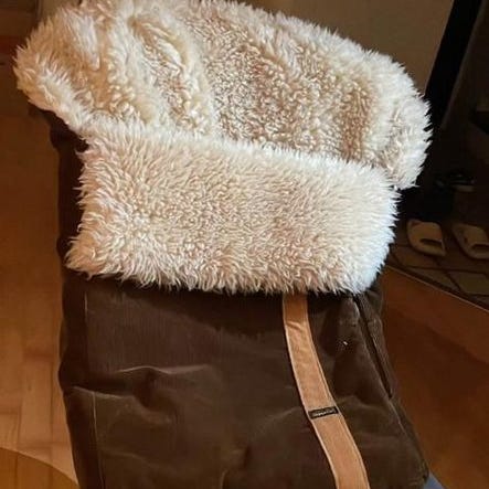 Svart åkpåse i äkta lammskinn från Nordlys säljes.