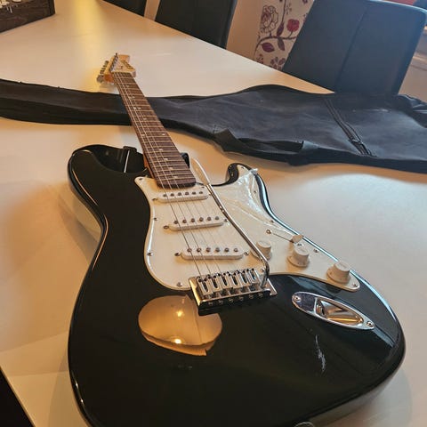 Det är en jättefin gitarr och jag prutar inte. Hals och strängar är injusterade