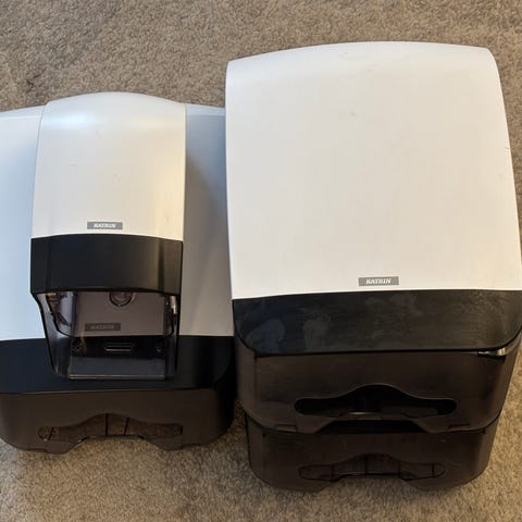 Tvåldispenser för väggmontering. Hölje i vit plast med öppningsbart lock för påfyllning och service. Avsedd för flytande tvål eller liknande hygienprodukter i behållare. Passar för användning i exempelvis kök, badrum eller andra våtutrymmen där beröringsfri dosering önskas.