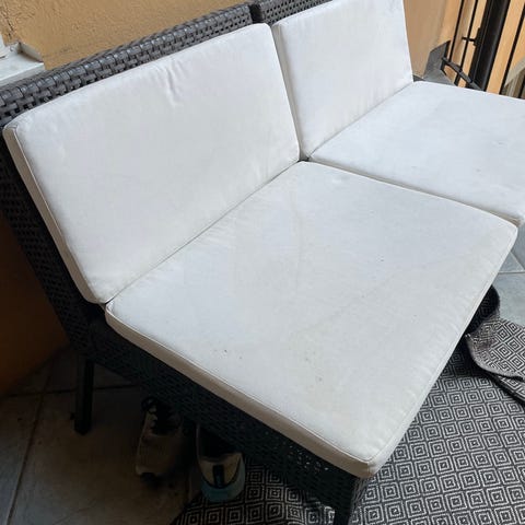 Bilder är från en annan säsong, helt klart. Soffan kommer att behöva en rengöring på våren men är i generellt gott skick! Rengörs enkelt med en blöt trasa och ett milt rengöringsmede.